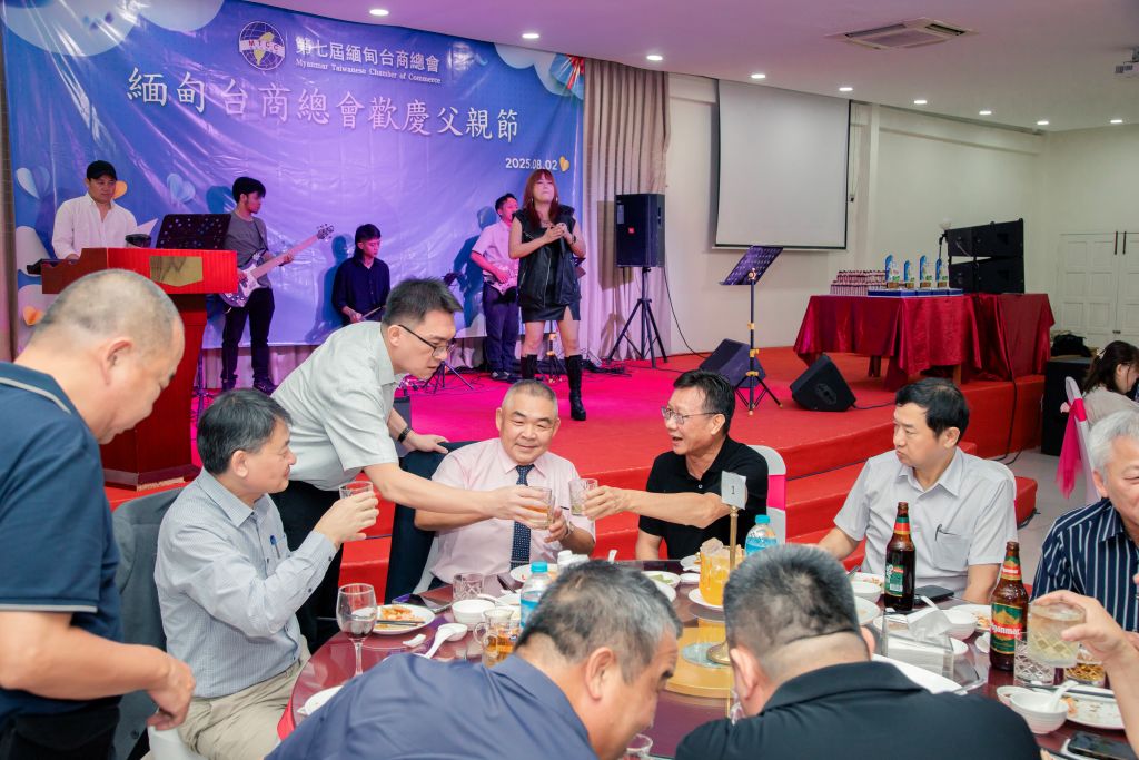 緬甸台商總會於 8 月 2 日晚間在仰光隆重舉行「慶祝父親節晚會」,吸引數百名會員、家屬參與,共同為在外打拚的父親們獻上敬意與祝福。本次晚會以「感恩父愛、凝聚情誼」為主題,現場布置溫馨隆重,並安排精彩表演及豐盛晚宴。多位台商領袖與來賓先後致詞,感謝父親在家庭與事業上的付出,並肯定他們在緬甸商業發展與台緬交流中的貢獻。
